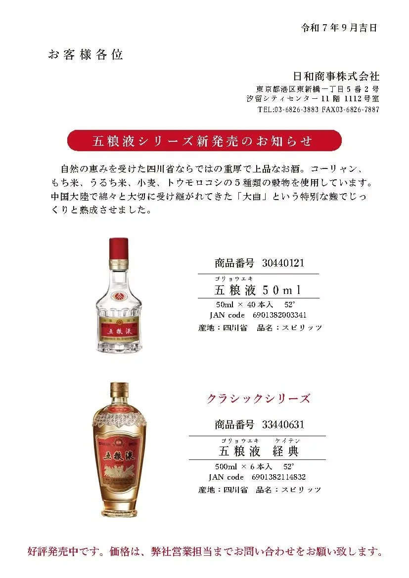 このたび、五粮液シリーズに新たな商品が加わりましたので、下記の通りご案内申し上げます。