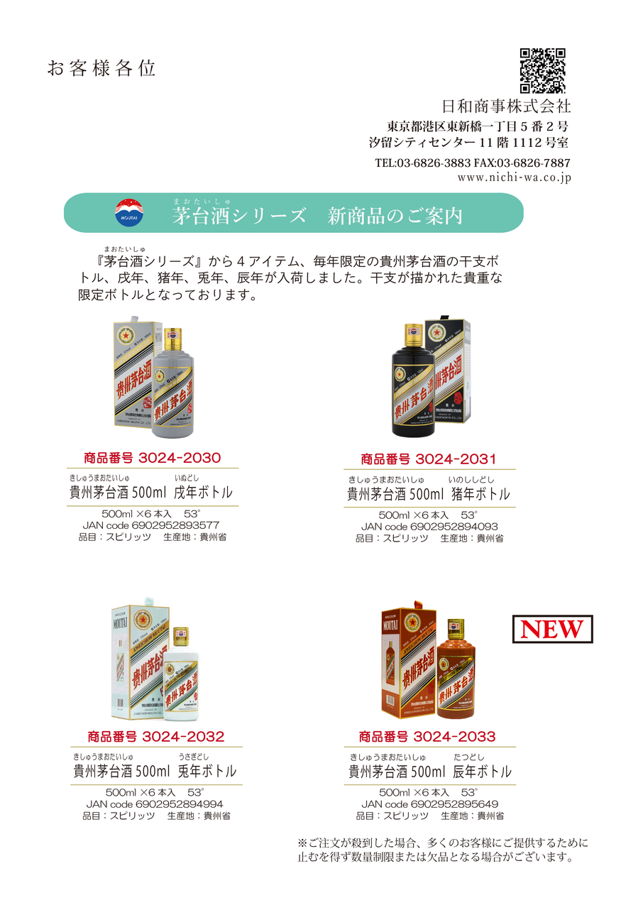 茅台酒シリーズ 新商品のご案内