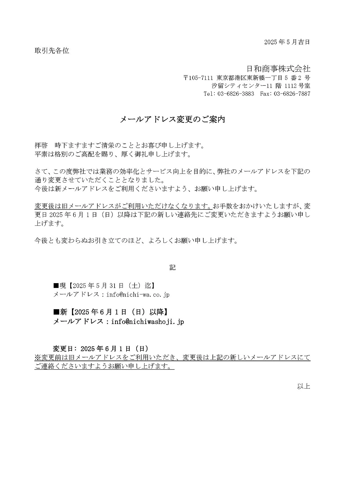 S Nichiwa 2025/10/24 S Nichiwa 2025/10/24 CHRISTIE’S 時計・宝石カクテル・レセプション 詳細を確認 S Nichiwa 2025/07/28 S Nichiwa 2025/07/28 2025年 お盆期間配送スケジュールのご案内 詳細を確認 S Nichiwa 2024/12/13 S Nichiwa 2024/12/13 当日出荷受注締め切り時間変更のご案内 詳細を確認 S Nichiwa 2024/12/04 S Nichiwa 2024/12/04 【2024年~2025年】年末年始 配送スケジュールのご案内 詳細を確認 S Nichiwa 2024/11/29 S Nichiwa 2024/11/29 江小白500ml 及び茅台醇2008 リニューアルのご案内 詳細を確認 S Nichiwa 2024/09/13 S Nichiwa 2024/09/13 委託倉庫ケイヒン株式会社山下埠頭流通センター移転のご案内 詳細を確認 S Nichiwa 2024/07/25 S Nichiwa 2024/07/25 2024年 お盆期間 配送スケジュール 詳細を確認 S Nichiwa 2024/07/12 S Nichiwa 2024/07/12 移転および電話番号、FAX番号等変更のご案内 詳細を確認 S Nichiwa 2019/05/28 S Nichiwa 2019/05/28 日和商事株式会社は、 貴州茅台酒の日本正規輸入代理店です。 Authorized import agent for Moutai in Japan. 詳細を確認 S Nichiwa 2019/05/28 S Nichiwa 2019/05/28 メールアドレス変更のご案内 Notice of Email Address Change 詳細を確認
